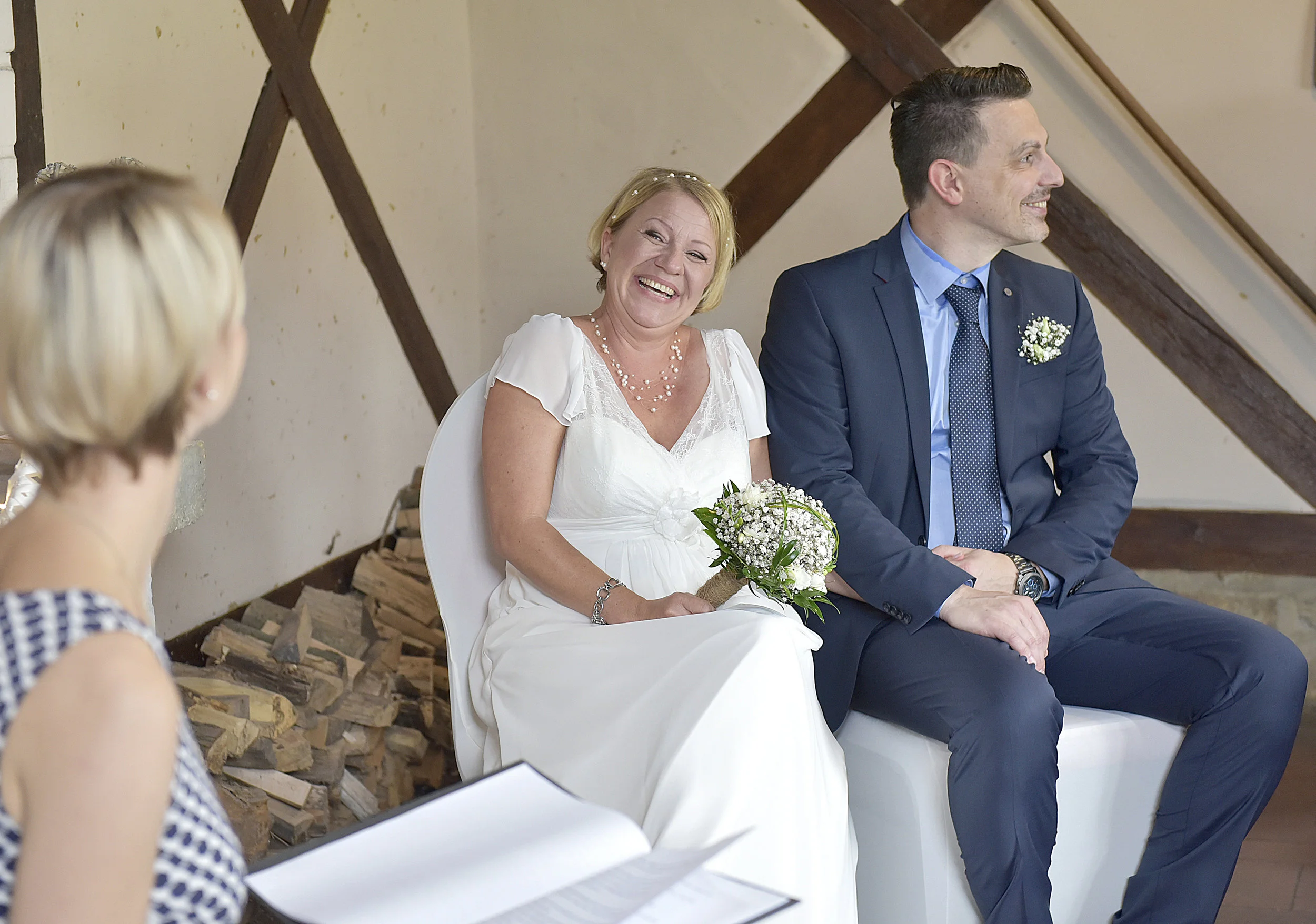 Am Tag eurer Hochzeit werde ich eine Stunde früher da sein, um zu schauen ob alles klappt, mit der Technik mit der Musik und natürlich um für euch da zu sein. Und dann wird geheiratet, ganz liebevoll und freudig, einfach authentisch, ganz nach eurem Geschmack.